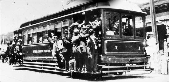The cars ran hourly between the two cities, with complaints lodged against boys who "hooked on" the sides of the car, avoiding the 20-cent charge.