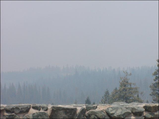When we started our journey that would take us to Nevada, Colorado, Montana, Idaho, and Oregon, there had been about 8,000 lightning strikes that started 800 fires in California. We stopped at the Deli to get a sub-sandwich to go, and then ate our lunch at the overlook just before the town of Washington. You can't see very far, because of the fire near here. The road into the town was closed except to fire fighters.