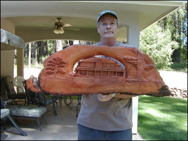 We meet many interesting people who do things with wood. Randy is very handy at making lovely wood carvings displayed below. You may have seen some of his work in businesses around Grass Valley and Nevada City. On September 12, 2008 Randy was selected as The Union newspaper's "Artist of The Day."Here's Randy with his five foot bear he carved from Sequoia.