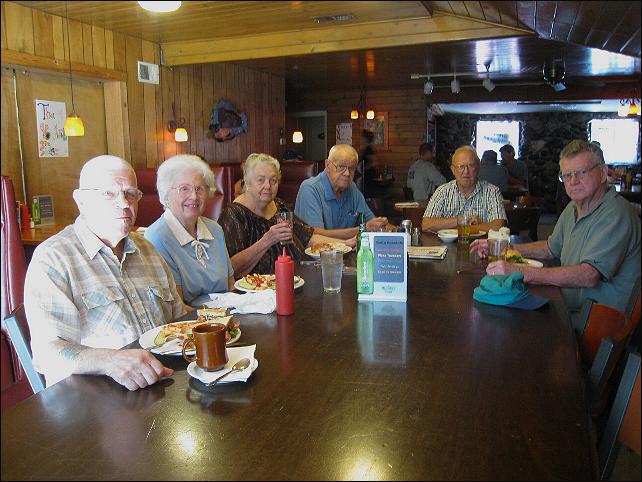 Not many were able to make it to lunch today. Left to right...Mel, Bonnie, Maxine, Bruce, Nick and Norman. We were sorry more couldn't make it, but the smaller group brought us within hearing distance of stories about the good ol' days growing up. Like the guy's lugging big ladders around picking pears in Joel Bierwagen's orchard. If you weren't strong enough you didn't have a job. Maxine worked in a fruit packing shed making sure that each box weighed exactly the same. Then there were the intriguing military experiences that young men have in foreign countries. This afternoon's camaraderie and tasty lunch was perfect, and we hope to share the fun with more old friends next time. This time around, I noticed the train model on the wall by our table that led to a wonderful video story about Nevada County's Narrow Gauge Railroad. If you would like to watch it, click on the photo below.