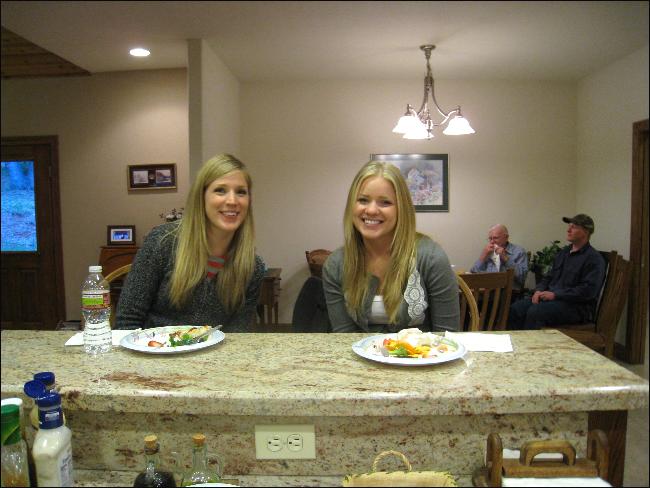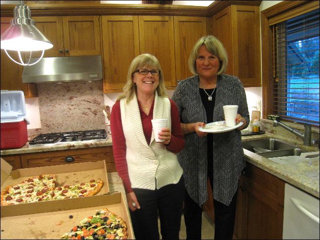 Sue and Pam getting some refreshment, and giving a