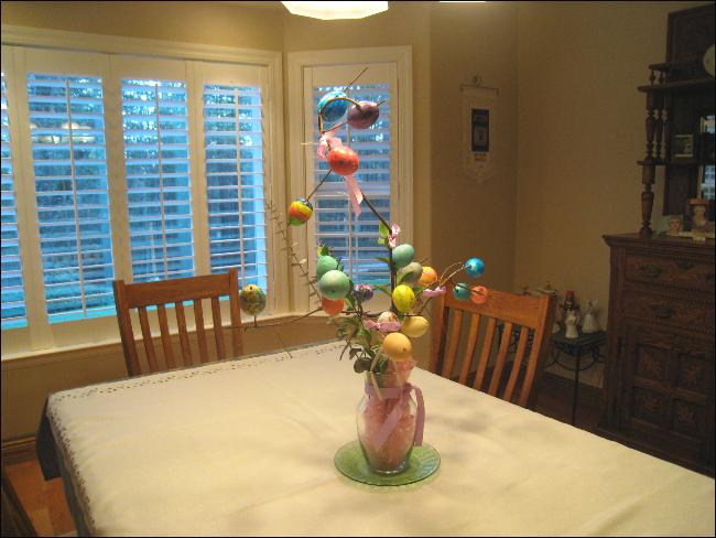 Easter egg creation. She's been making these delightful table displays