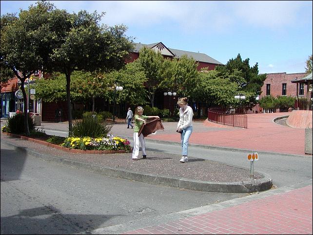 We're looking for a parking spot where all the tourists go. Eureka is really fixed up nice.