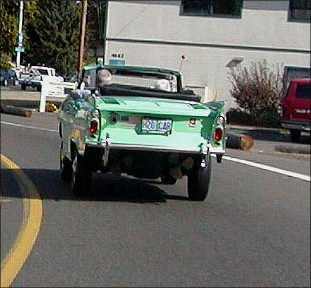 The Amphicar has a top speed of 7mph on water and 70mph on land. Hence, it was dubbed the "Model 770". The Amphicar is moved in the water by its twin nylon propellers. A special two-part land-and-water transmission built by Hermes (makers of the Porsche transmission) allows the wheels and propellers to be operated either independently or simultaneously. The "land transmission" is a 4-speed-plus-reverse unit similar to those found in the old Volkswagen Beetles. The "water transmission" is a 2-speed offering unique to the Amphicar featuring single forward and reverse gears. In the water, the front wheels act as rudders. How about a peek at one in motion?
