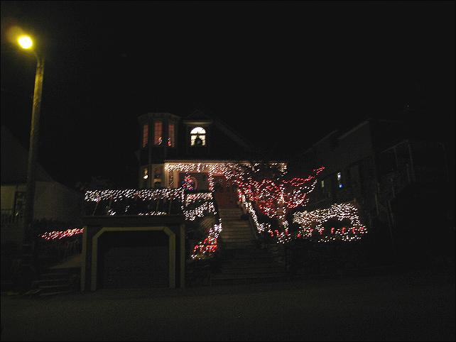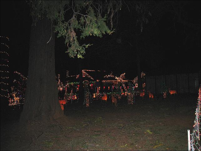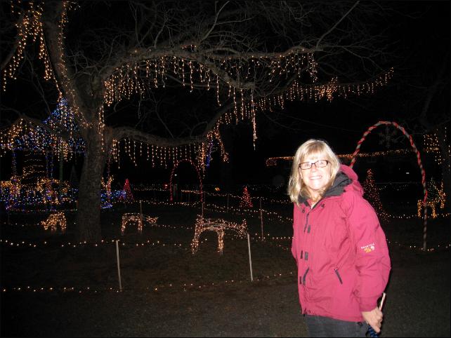Cheryl thought it would be fun if we went on a Christmas lights tour. Michele, Sue and I agreed. Mel said he'd rather stay home by the fire and watch football. Besides, he didn't think he would be able to get a word in sideways with four talkative women. So we piled into Cheryl's car, headed to Nevada City. It was surprising how many people already have their decorations up.